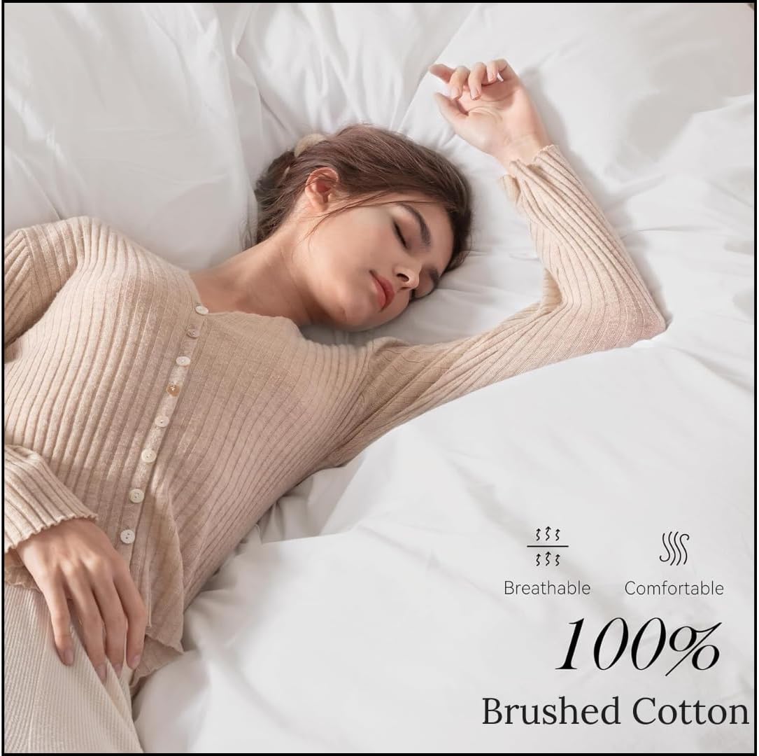 100% Brushed Cotton Thermal Flannelette Plain Dyed Duvet Cover Set
