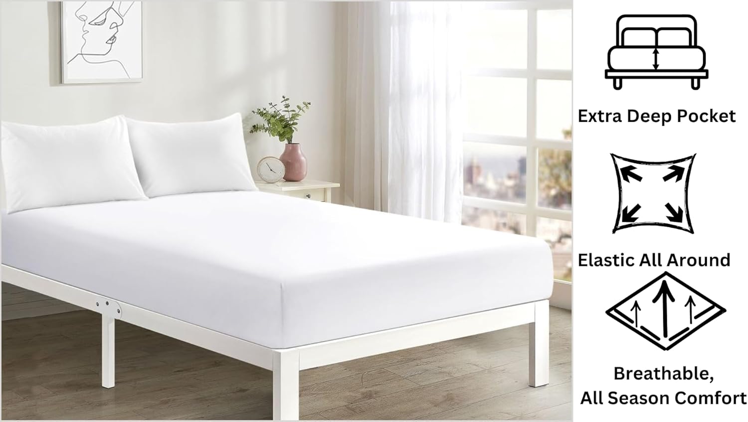 Extra Deep 16″/40CM PolyCotton EasyCare Percale Deep Pocket Fitted Bed Sheets