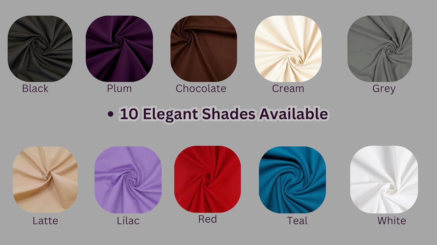 Black ,Chocolate ,Cream ,Grey ,Latte ,Lilac ,Plum ,Red ,Teal ,White |